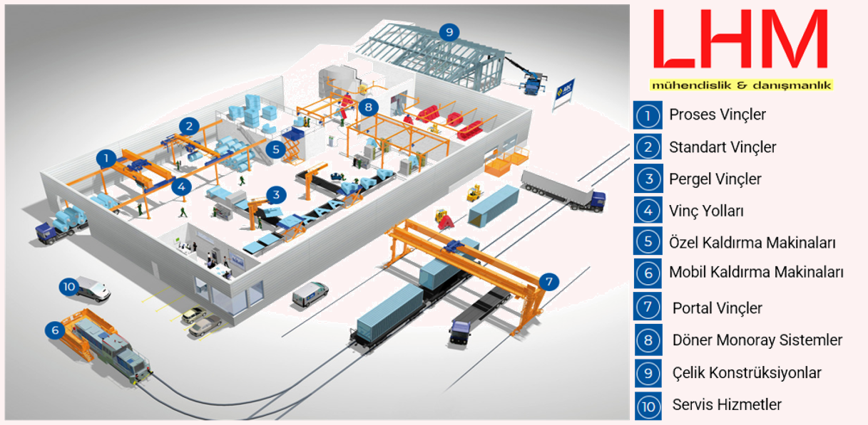 LHM Mühendislik & Danışmanlık; vinç, çelik konstrüksiyon, mekanik analiz, proje danışmanlığı ve Ar-Ge faaliyetlerinde hizmet veren %100 yerli bir mühendislik firmasıdır.
